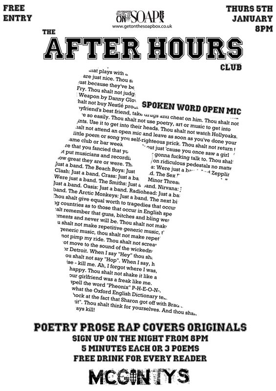 The regions naughtiest spoken word open mic night is back for 2012 with a new home in PJ's Bar at McGinty's in Ipswich. Its free entry and everyone is welcome, whether you write your own stuff or just want to read your favourite words by other people. Its just about the fun and love of the spoken word. Its free entry and every reader gets a free drink too!