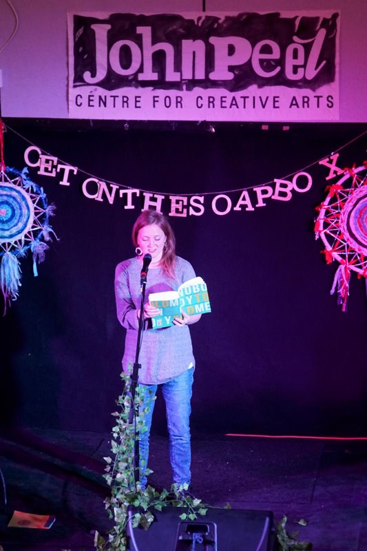Hollie McNish launched our regular spoken word poetry club in April 2016, at the JPC, on Wednesday 27th, which just happened to be my birthday. It was one of the best birthday’s ever. Support came from Tilly Moses (previous Tilly Dalglish), Christine York and Andy Bennet, hosted by Stowmartian Dan Clark. I hope you enjoy the photos as much as we do. If you have taken photos at any SoapBox gigs and have some special ones floating around, we’d love to see them. Please email amy@getonthesoapbox.co.uk and we’ll put them on the website and link to your work. Love & Boxes.