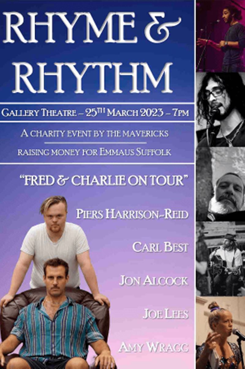 I was absolutely delighted to be asked by Fred to perform some of my poems at his gig on Saturday 25th March, at the Gallery Theatre (ipswich), raising money for Emmaus Suffolk. It was a fab night organised by Jon Alcock (Suffolk Mavericks) compere, and poet. Artists on stage in order of appearance: Amy Wragg (poet), Carl Best (Musician), Jon Alcock (poet), Joe Lees (Musician), Fred & Charlie (Band).