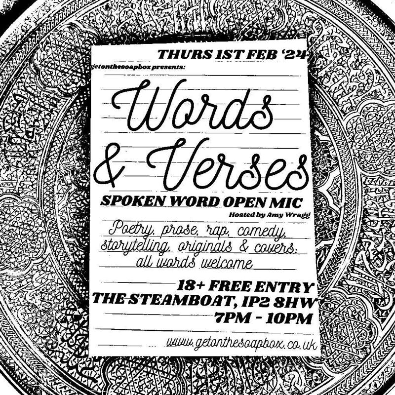 On Thursday 1st February, SoapBox held the first 'Words & Verses' - spoken word open mic - of 2024, free entry, at the lovely Steamboat. I got super organised and have booked in ALL the dates for the whole year already. Generally we'll be there on the first Thursday of the month, with the odd exception, but I will also be holding some infrequent special poetry events, ticketed, which will be paid entry.