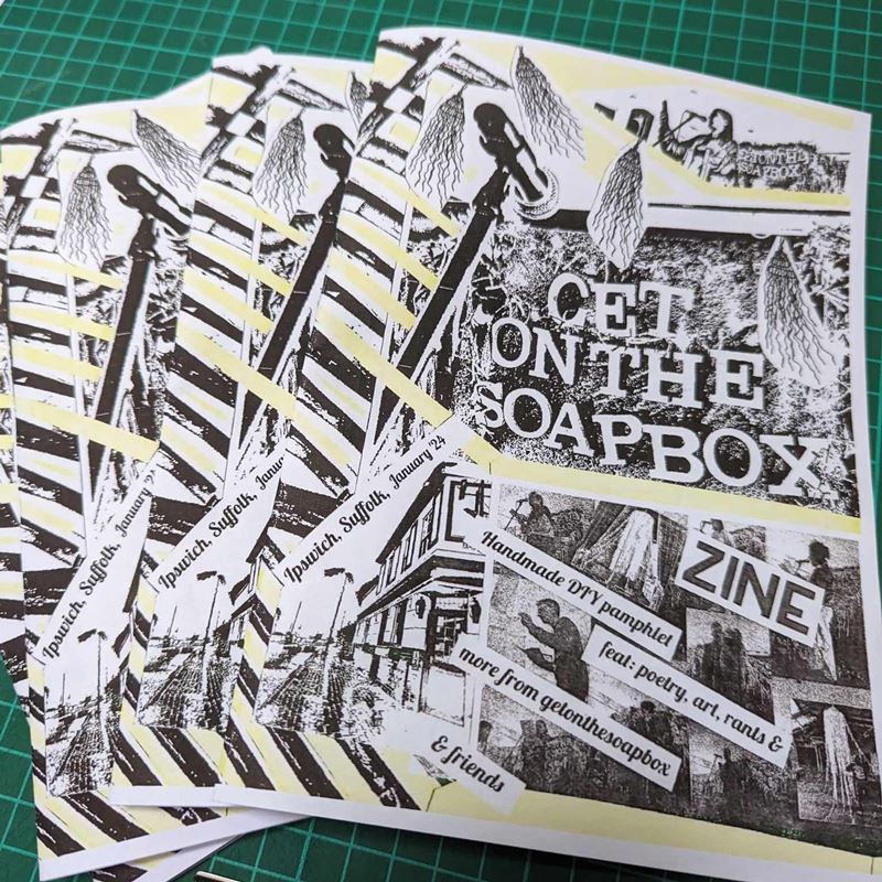 Throughout 2024 I am making a zine a month (at least). They will not be available online - as usual - but can be obtained by joining my new community project 'SoapBox People'. All members of this will receive a zine a month in the post, along with other services & benefits. Read more about that >>>HERE<<< I will, however, continue to distribute a limited number of zines (for free) across East Anglia, and will share a blog about where they can be found when the next zine is ready to greet the world.
