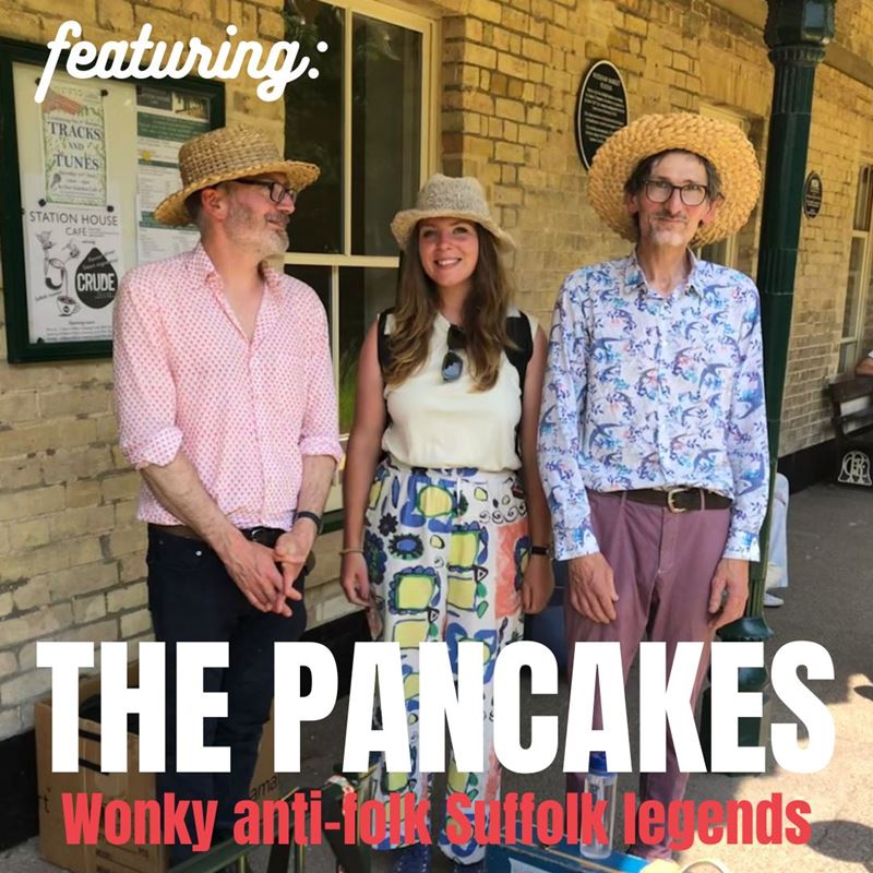 The Pancakes are one of those bands that you really have to see/hear live. I've been a fan for over a decade, and they always make me smile and dance. They are endearingly unusual, with very little of their work available online. I like to call them 'Suffolk's best kept secret'. They played our wedding 9 years ago, they played nearly all of my festival stages. At least once a year, I MUST see The Pancakes play. They are both extremely talented, hugely uplifting and absolutely hilarious. Usually they play backrooms of pubs (which of course I am a fan of) but this sometimes means their fantastic lyrics aren't able to be heard clearly. This is why I have splashed out on a 'proper' venue with an in-house soundsystem and trained sound technicians. Its a rare treat, and with my love of poetry, language & words, Im already very excited to be able to hear every word of this brilliant band's set. A year (or so) ago they changed from a two-piece, to a three-piece, adding the fantastically talented brass player you see here today. And WOW!!!! She is extraordinary. As are they all. Do check out their fab video for 'Crazy Fingers' on youtube >>> HERE <<< to get a flavour of their style.