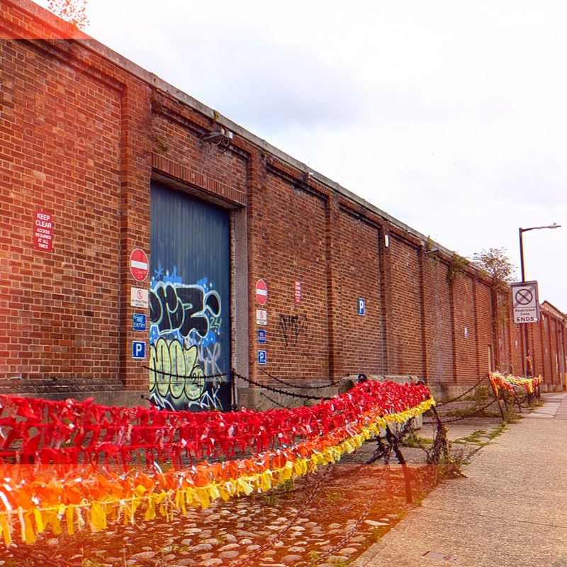 Ipswich Visual Arts Trail (2025) : Whlist based temporaily at a local arts space, Amy tranformed a whole room into a beautiful otherworld experience. Participants were invited to consider their responsibility to the natural environment by making a communal jellyfish, and /or making a Zine from our unique DIY kit. Please see timelapse of the takedown >>> HERE <<< She also took to the streets, and installed giant colourful bunting walls in urban spaces (see photo above).
